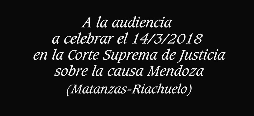 A las Excelencias Ministeriales: Ricardo Lorenzetti, Elena Highton de Nolasco, Juan Carlos Maqueda, Carlos Rosenkrantz y Horacio Rosatti Con copia a los Secretarios de Juicios Originarios Dr. José María Irigaray y de Juicios Ambientales, Dr. Néstor Cafferatta Ref: audiencia del 14/3, c/Mendoza; preparación a las respuestas Acerco por Secretaría privada a V.E. este DVD de datos con 6 archivos: audiencia Corte full5 de 5Mbps para ver por pantalla gigante (2,1 GB) audiencia Corte 14032018 de 2 Mbps (982 MB) audiencia Corte android de 0,5 Mbps(262 MB) audiencia Corte android ch de 0,27 Mbps (159 MB) y audiencia Corte no img android de 0,27 Mbps, sin intercalación de imágenes, para facilitar hacer foco en el carácter de la expresión(147 MB) Todos ellos, de igual contenido, pero con formatos de reproducción para distintos soportes, están referidos a los fraudes, colusiones y obstrucciones presentes en la ley 26168, en el fallido PISA MR , con consecuencias insalvables en el propio fallo de V.E. Correlatos de estas expresiones están hoy activas en las causas CAF 21455/2017 y 30739/2017, con antecedentes administrativos y judiciales de 11,5 y 8 años respectivamente. El 6º archivo es una carpeta de 512 causas judiciales de hidrología urbana, frutos de 13 años de trabajo aplicados a 47 causas en SCJPBA, 5 en CSJN, 9 en 2 JCF y 5 en 2 CAF. Llevo más de 21 años mirando temas de hidrología urbana con más de 15.000 horas aplicadas al estudio y expresión de sistemas termodinámicos naturales abiertos y enlazados, materia muy específica para entender los problemas del Riachuelo iniciados hace 232 años, sin nunca pedir algo a cambio... y sin embargo, a mis 76 años advierto, tras ver los 3 bloqueos realizados a los 3 intentos de subir esta pesada información a youtube, con qué elemental cinismo niegan con censura previa, la oportuna expresión que enriquece las respuestas y el tratamiento que la CSJ ofrecerá el 14/3/2018 a estas cuestiones. Tengo particular aprecio por el titular en las sombras del ACUMAR y es a Él a quien en primera instancia apuntan estas advertencias para ayudar a sincerar y no seguir avanzando en respuestas que compliquen más sus compromisos. Comprendo las decisiones que vienen tomando, pero en algún momento unos y otros tendrán que empezar a sincerar los encierros terminales que carga esta causa MR tal cual está planteada, violando el orden natural e irremplazable de los 4 enunciados del par 2º, art 6º, ley 25675 y la mirada más compleja que les apunta el glosario de la ley Gral del ambiente prov. a la voz “ecosistema”. Sin detenerse a considerar estas cuestiones no hay salida ni con el auxilio de 100 bancos mundiales. Este video ayudará a enriquecer los criterios de V.E. El desarrollo del objeto de esta presentación de 10 carillas que adjunto como ANEXO I y acabo de hacer hoy en la causa CAF 21455, ayudará a V.E a sentir el peso específico de estos encierros en las más altas esferas de la Administración, que así comparten las dificultades de V.E. y de no pocos Jueces. Una lectura, aún muy rápida, patentizará estos bloqueos de una década en ellas. También acerco por Anexo II, las primeras 4 págs. de la nota entregada el 19/5/2015 en la Secretaría de Juicios Ambientales al Dr. Néstor Cafferatta, en razón del reconocimiento mutuo de una larga década, en donde fácil resulta advertir la antigüedad de estas advertencias y vocación de servir a esta causa atascada en abismos de conocimiento y despistes legales desde su origen. Reitero mi ayuda a V.E. para lo que alcance a conformar utilidad. Saludo a V.E. con mi mayor consideración y aprecio. Francisco Javier de Amorrortu, 6/3/2018