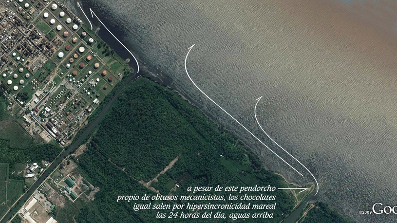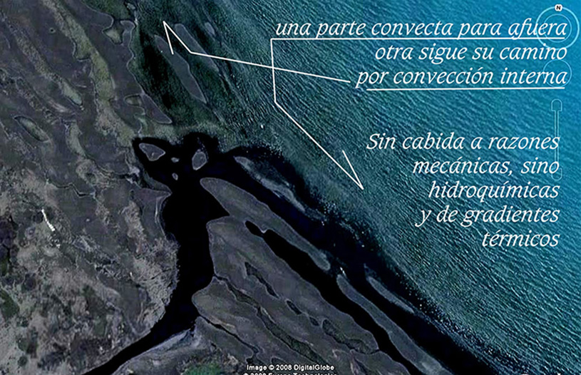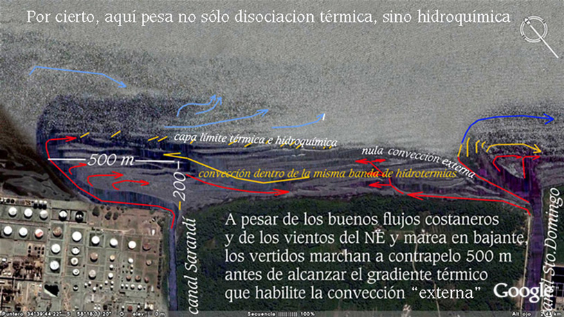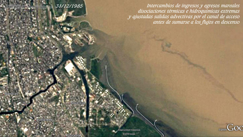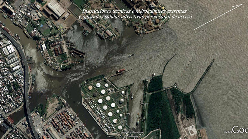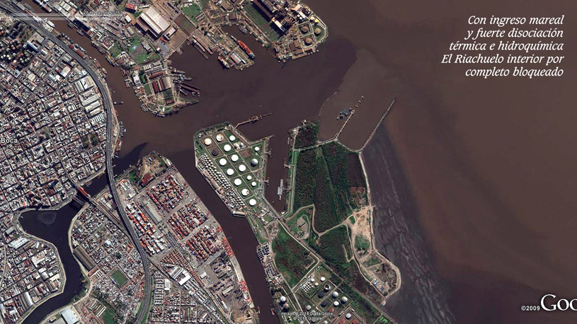De la Historia de la Boca del Riachuelo de Enrique de Gandía Durante la primera fundación tuvo el nombre de Río Pequeño. Hoy a su nueva entrada que habilita ingresos mareales directos, le sumaron un puerto de carga para buques de 12 m de calado que inhabilita toda y cualquier asociación térmica con los flujos interiores que así quedan bloqueados sin remedio, paralizando todo el curso interior. Bastan 0,2º para disociarlas.