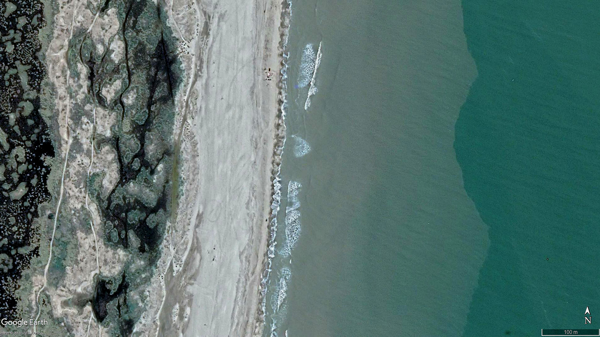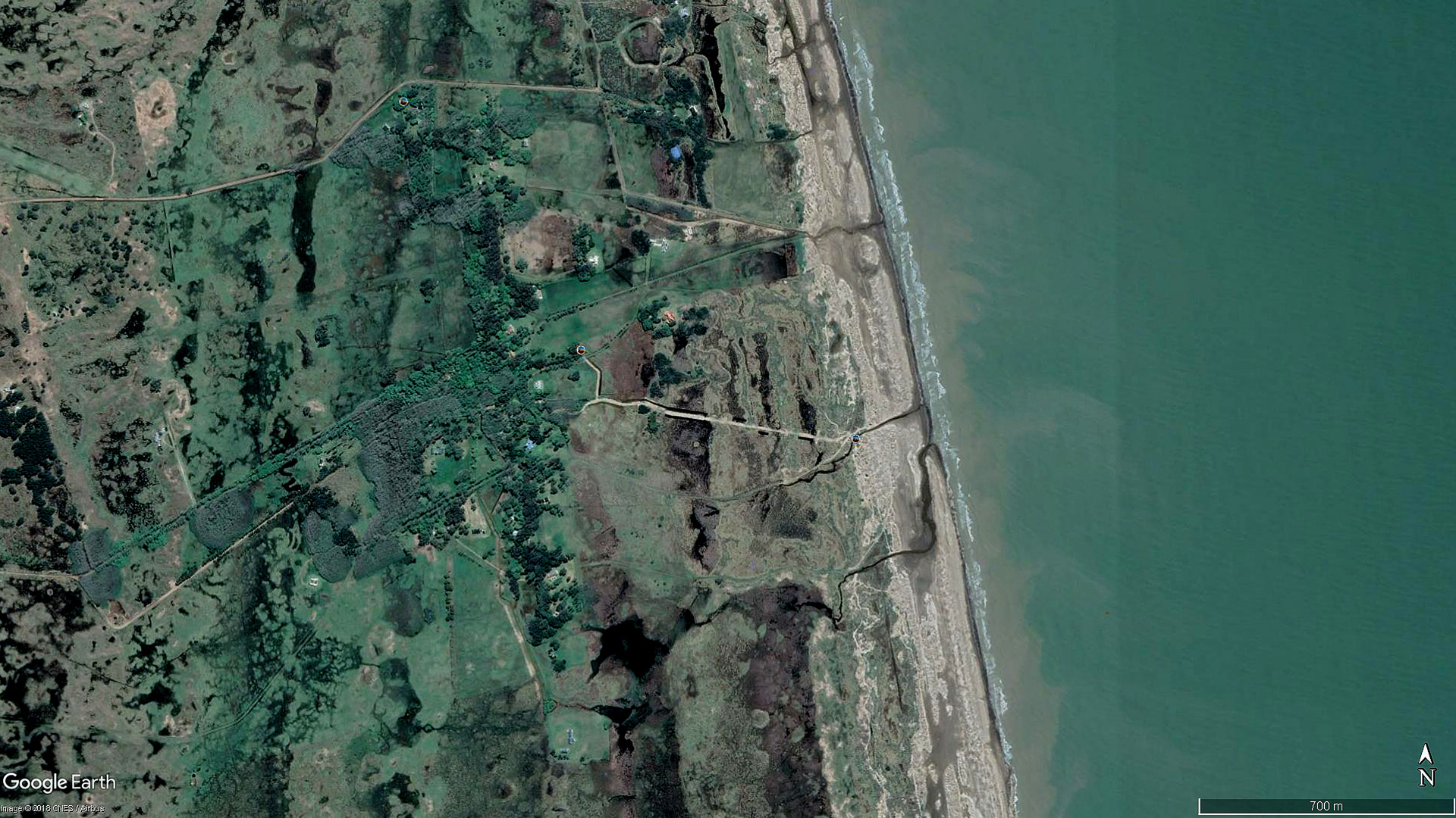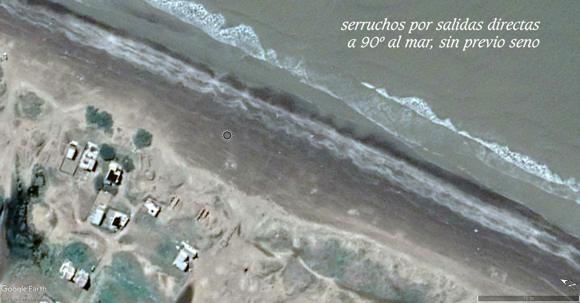 Trazar en estos 54 Kms hasta Mar Azul -e incluso en los 6 Kms siguientes-, un buen seno en el fondo de la playa emergida (100 a 150 m del mar) y corregir las aberraciones en la salida de Mar Chiquita alimentarían una buena deriva litoral. Ver también /trujillo.html . . . /trujillo2.html . . . /trujillo3.html . . . /trujillo4.html En todos lados se cuecen habas, pero con distintas salsas.