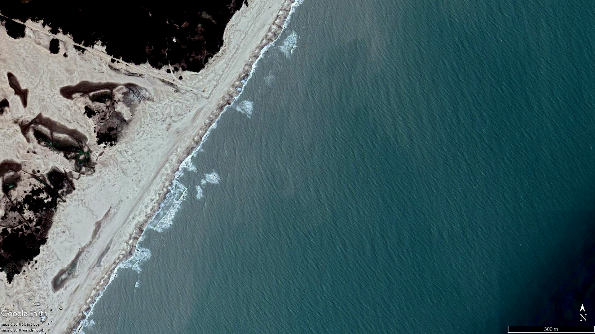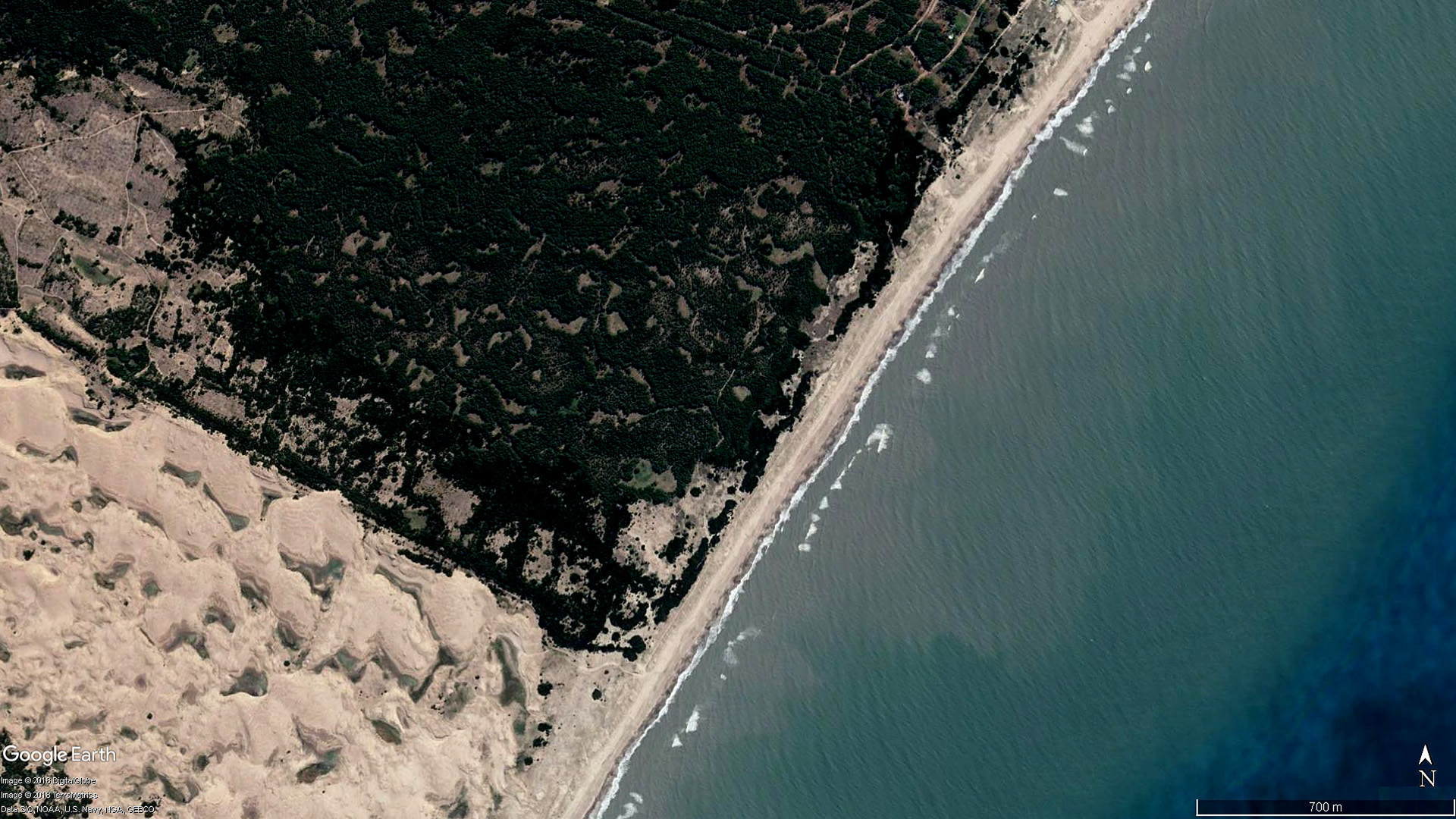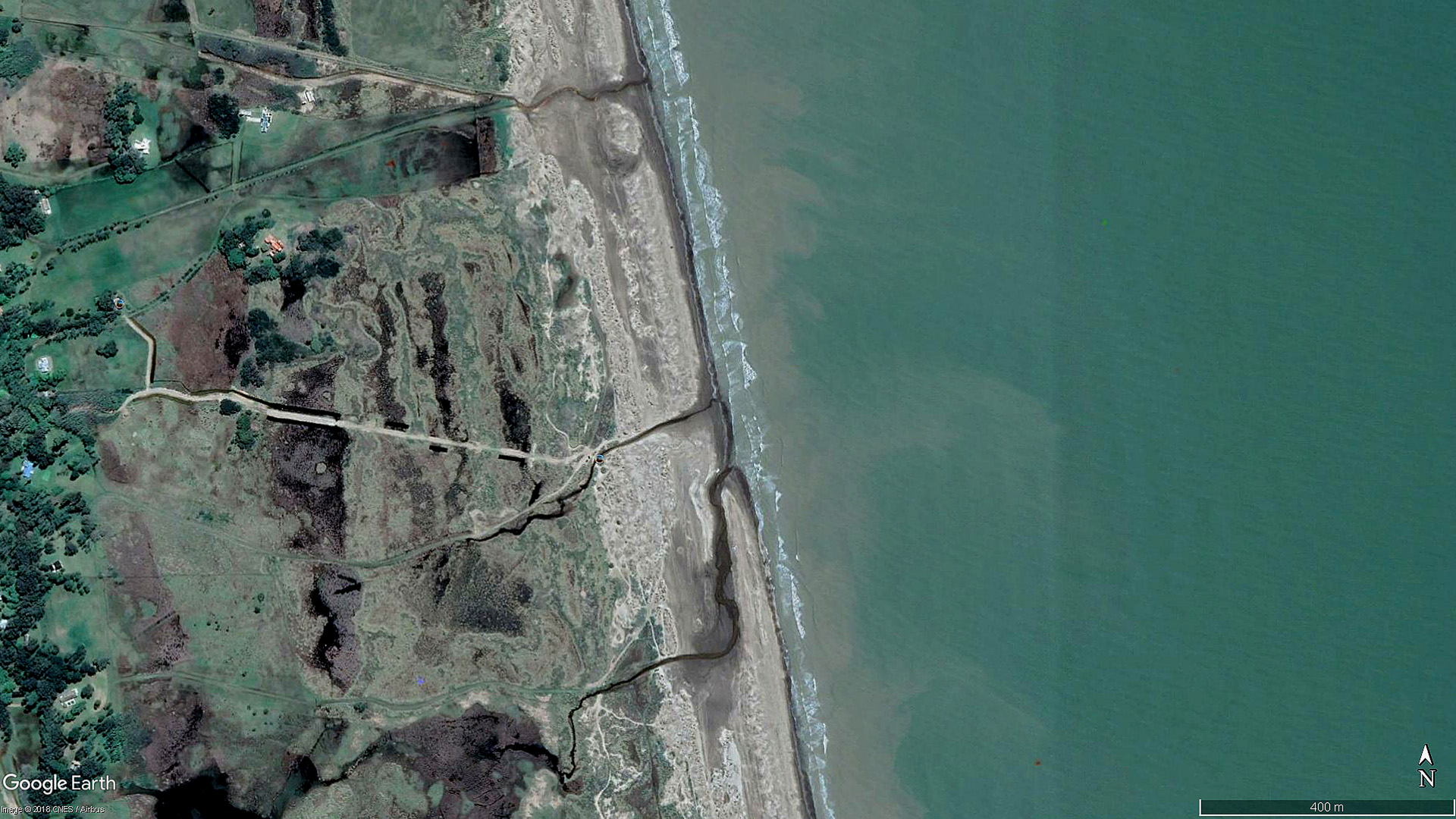 Trazar en estos 54 Kms hasta Mar Azul -e incluso en los 6 Kms siguientes-, un buen seno en el fondo de la playa emergida (100 a 150 m del mar) y corregir las aberraciones en la salida de Mar Chiquita alimentarían una buena deriva litoral. Ver también /trujillo.html . . . /trujillo2.html . . . /trujillo3.html . . . /trujillo4.html En todos lados se cuecen habas, pero con distintas salsas.