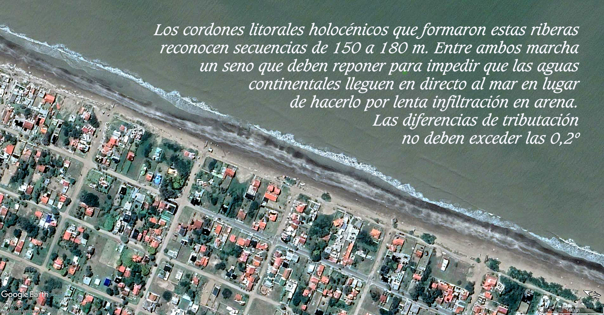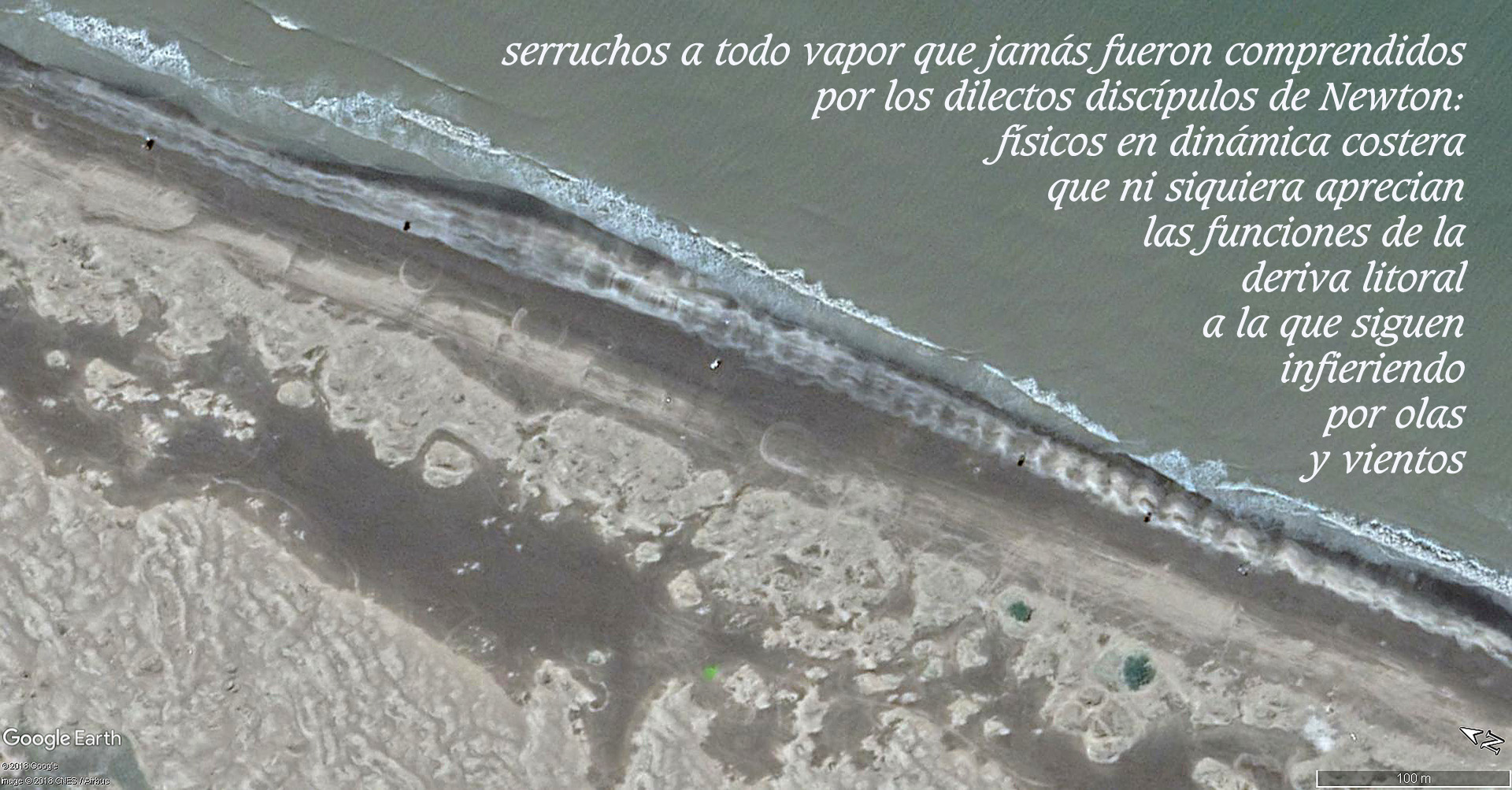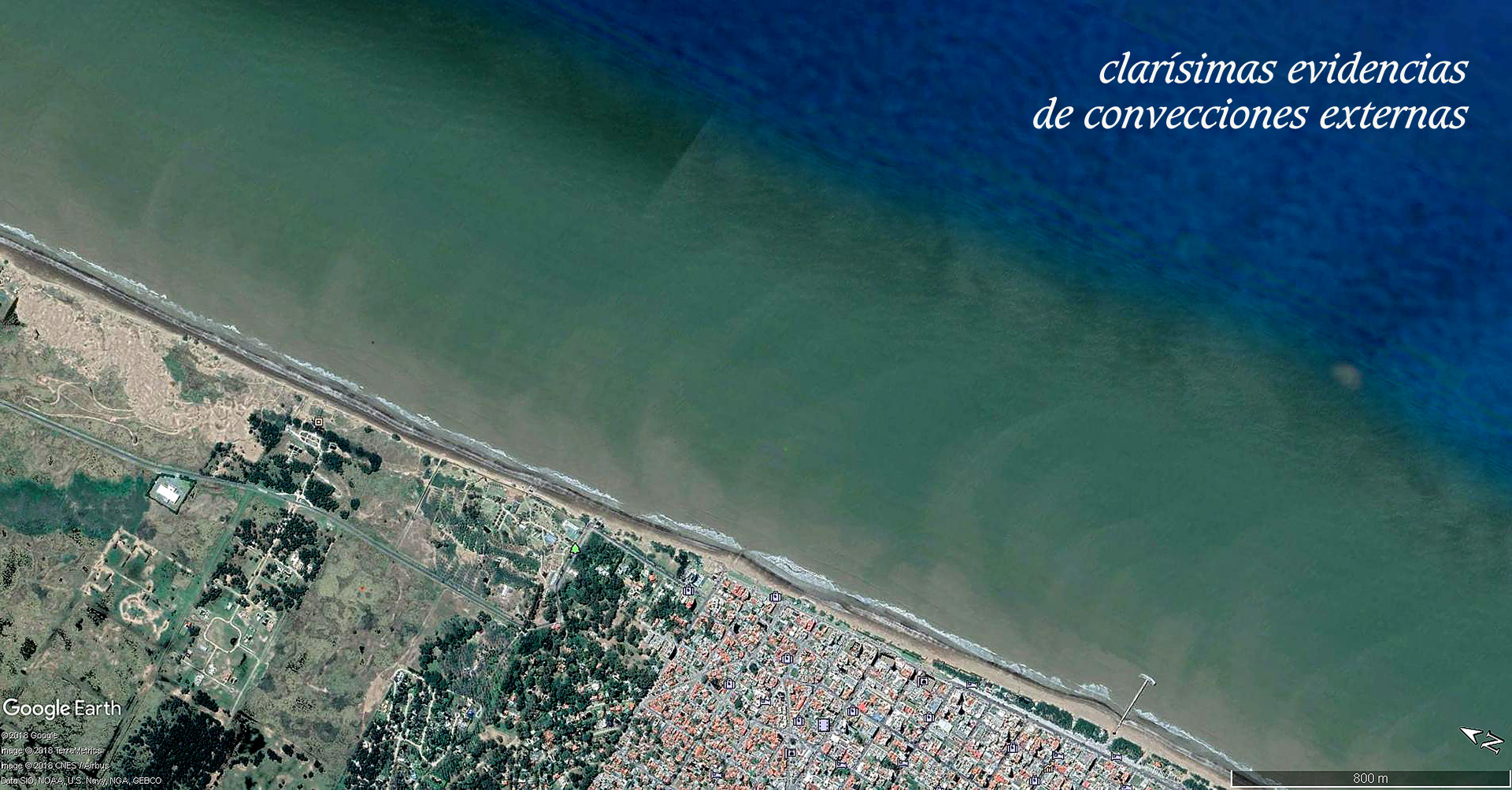 De Las Toninas a Mar Azul Deriva litoral: Madre de las playas En su ausencia: convección externa La invitación a echar una mirada por estas playas de Las Toninas me la alcanza Samuel del Busto alarmado por sus graves erosiones. Para evitar catecismos y razones de 4 siglos, que siempre incluyen olas y vientos para inferir los sostenes de la deriva litoral a la que cargan estas erosiones, voy por estos recursos de imagen intentando entrar por los sentidos y dejando al margen las razones anterores. Los recursos que aprecio considerar son: las aguas, los sedimentos y las energías del sol cargadas en ellos; las temperaturas de las aguas en las interfaces tributarias, la dirección de la deriva litoral paralela a las riberas y las convecciones externas, que así llamamos a esta deriva litoral cuando se aleja de ellas. Aguas sin sedimentos equivale a aguas sin energías. Tributaciones sin el recurso.de la delicada interfaz mediante un cordón litoral de salida ligeramente sumergido, resultan inviables para sumarse a los hombros de la deriva litoral. Derivas litorales sin aportes de aguas caldas tributarias reconocen presta maximización de sus entropías. Recordemos que la advección de estos ecosistemas de salida está determinada por un gradiente de ligera menor temperatura no mayor a .0,2º. De lo contrario las aguas quedan disociadas y todo deviene en convección externa. Estos planteos termodinámicos de sistemas naturales abiertos y enlazados son la base que asiste el aprecio de las imágenes y sus breves incripciones. La ecología más ajustada de estos ecosistemas de salida considera necesario mirar y valorar los recursos solares aledaños que asisten al tributario en los tramos anteriores a su salida. Resulta fundamental cuidar la preservación del seno entre cordones litorales emergidos -inmediato anterior a los sumergidos- y a cargo de evitar que las escurrentías continentales fluyan por la superficie en directo al mar, en lugar de tributarse a través de las lentas infiltraciones en las arenas de las playas para acreditar así su más delicada tributación y enlace.. No menos importante vigilar el estado de Gracia (sano o amenazado) de la curva del cordón litoral de salida tributaria, cuyas delicadas deposiciones de borde cuspidado se bordaron merced a la capa límite térmica que separa la deriva litoral de las aguas inmediatas más profundas, cuyos corredores no pocas veces marchan en dirección contraria. Si el ecosistema de deriva litoral recibe por su retaguardia el permanente aporte de calor del tributario, encontrará relativizado a esta circunstancia el crítico gradiente de ligera menor temperatura que determina sus advecciones; que en este caso, marchando al Norte debería encontrar aguas más caldas y no más frías. Esta incoherencia la resuelve el aporte de calor que añade a la deriva litoral el tributario. Recordar estas herramientas de criterio llevará un tiempo, pero una vez grabadas, ese tiempo aplicado se recupera presto. Agradezco a mi Querida Musa Alflora Montiel Vivero el ánimo y la inspiración para seguir desde hace 13,5 años estos senderos por termodinámica de sistemas naturales abiertos y enlazados aplicados a ecologías de ecosistemas hídricos y sus tributaciones en planicies donde las energías gravitacionales no cuentan, sino en extrapolaciones. A mis Queridas Musas Estela Livingston y Julieta Luro debo expresión e ilustración desde hace 33 años. Francisco Javier de Amorrortu, 6 de Diciembre del 2018 PD: En esta misma página encontrarán 14 html dedicados a la deriva litoral. Ver por/deriva.html a /deriva14.html |