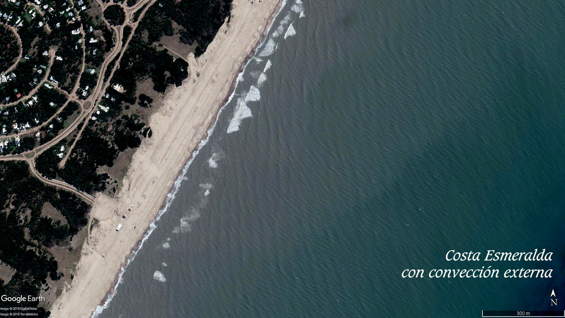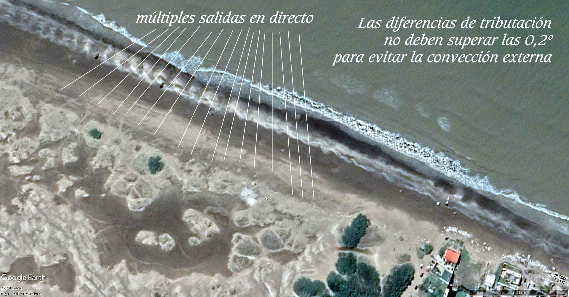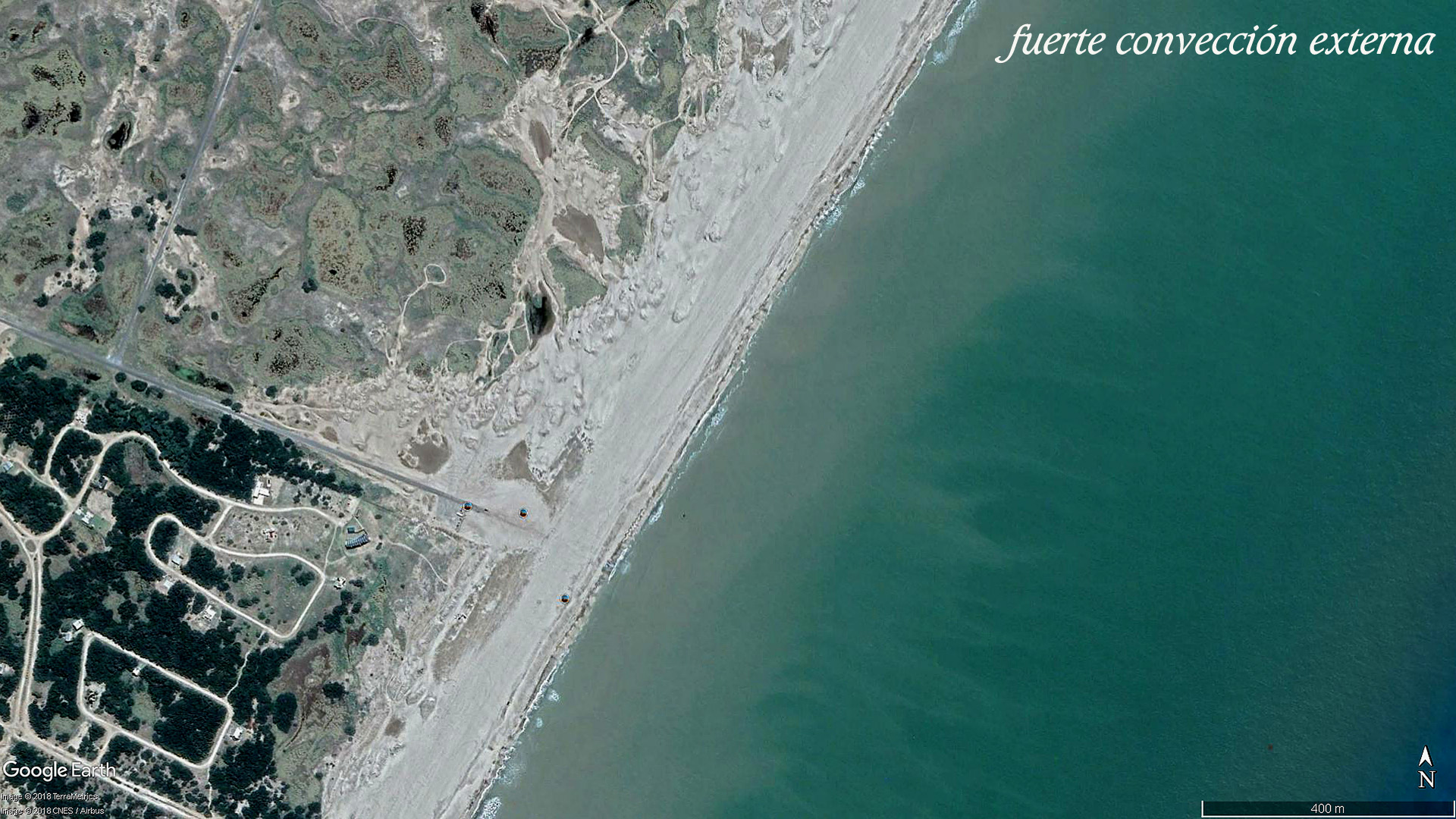 De Las Toninas a Mar Azul Deriva litoral: Madre de las playas En su ausencia: convección externa La invitación a echar una mirada por estas playas de Las Toninas me la alcanza Samuel del Busto alarmado por sus graves erosiones. Para evitar catecismos y razones de 4 siglos, que siempre incluyen olas y vientos para inferir los sostenes de la deriva litoral a la que cargan estas erosiones, voy por estos recursos de imagen intentando entrar por los sentidos y dejando al margen las razones anterores. Los recursos que aprecio considerar son: las aguas, los sedimentos y las energías del sol cargadas en ellos; las temperaturas de las aguas en las interfaces tributarias, la dirección de la deriva litoral paralela a las riberas y las convecciones externas, que así llamamos a esta deriva litoral cuando se aleja de ellas. Aguas sin sedimentos equivale a aguas sin energías. Tributaciones sin el recurso.de la delicada interfaz mediante un cordón litoral de salida ligeramente sumergido, resultan inviables para sumarse a los hombros de la deriva litoral. Derivas litorales sin aportes de aguas caldas tributarias reconocen presta maximización de sus entropías. Recordemos que la advección de estos ecosistemas de salida está determinada por un gradiente de ligera menor temperatura no mayor a .0,2º. De lo contrario las aguas quedan disociadas y todo deviene en convección externa. Estos planteos termodinámicos de sistemas naturales abiertos y enlazados son la base que asiste el aprecio de las imágenes y sus breves incripciones. La ecología más ajustada de estos ecosistemas de salida considera necesario mirar y valorar los recursos solares aledaños que asisten al tributario en los tramos anteriores a su salida. Resulta fundamental cuidar la preservación del seno entre cordones litorales emergidos -inmediato anterior a los sumergidos- y a cargo de evitar que las escurrentías continentales fluyan por la superficie en directo al mar, en lugar de tributarse a través de las lentas infiltraciones en las arenas de las playas para acreditar así su más delicada tributación y enlace.. No menos importante vigilar el estado de Gracia (sano o amenazado) de la curva del cordón litoral de salida tributaria, cuyas delicadas deposiciones de borde cuspidado se bordaron merced a la capa límite térmica que separa la deriva litoral de las aguas inmediatas más profundas, cuyos corredores no pocas veces marchan en dirección contraria. Si el ecosistema de deriva litoral recibe por su retaguardia el permanente aporte de calor del tributario, encontrará relativizado a esta circunstancia el crítico gradiente de ligera menor temperatura que determina sus advecciones; que en este caso, marchando al Norte debería encontrar aguas más caldas y no más frías. Esta incoherencia la resuelve el aporte de calor que añade a la deriva litoral el tributario. Recordar estas herramientas de criterio llevará un tiempo, pero una vez grabadas, ese tiempo aplicado se recupera presto. Agradezco a mi Querida Musa Alflora Montiel Vivero el ánimo y la inspiración para seguir desde hace 13,5 años estos senderos por termodinámica de sistemas naturales abiertos y enlazados aplicados a ecologías de ecosistemas hídricos y sus tributaciones en planicies donde las energías gravitacionales no cuentan, sino en extrapolaciones. A mis Queridas Musas Estela Livingston y Julieta Luro debo expresión e ilustración desde hace 33 años. Francisco Javier de Amorrortu, 6 de Diciembre del 2018 PD: En esta misma página encontrarán 14 html dedicados a la deriva litoral. Ver por/deriva.html a /deriva14.html |