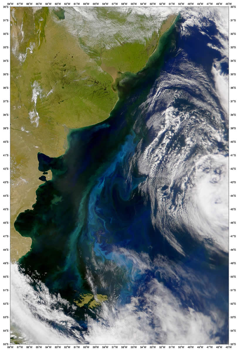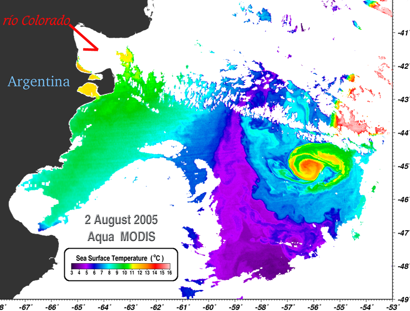 De nuestra plataforma Reproduzco algunos pasajes del trabajo de Marta Alperín, Emiliana Bernasconi y Gabriela Catalina Cusminsky, "Asociaciones de foraminíferos bentónicos recientes, de la Plataforma Continental Argentina", publicada en Ameghiniana Vol.45, Nº2, Abril/Junio 2008, pues me resultó de interés su mención al despegue de procesos convectivos estacionales en el área. Área de estudio: características geomorfológicas, sedimentológicas y oceanográficas El área estudiada, ubicada entre los paralelos 39° y 43° de latitud Sur y los meridianos 58° y 65° de longitud Oeste, abarca un sector de la Plataforma Continental Argentina propiamente dicha y el golfo San Matías. La imagen que sigue habla de una ubicación inmediata al Sur
