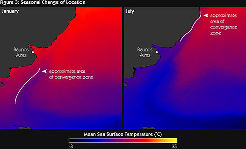 La mirada fenomenal acerca realidades que nunca habíamos considerado. A qué imaginar la cantidad de interacciones que suscita esta imagen que sigue, refiriendo de las variaciones en las alturas de la superficie del mar. . . . Parámetros sobre los que se viene discerniendo: TEMPERATURA El agua varía en un gradiente latitudinal según las temperaturas medias anuales. Así se clasifica en: