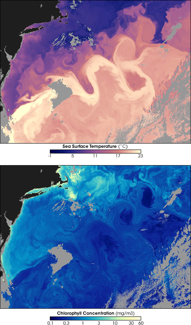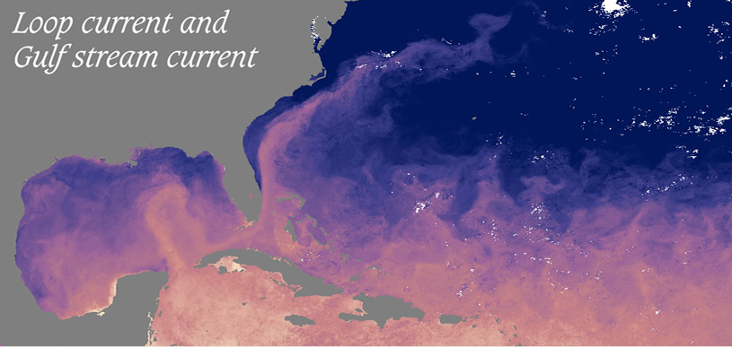 En su origen, la corriente del Golfo dícese generada sobretodo por la fuerza de los vientos; pero su extensión en el Atlántico Norte es mantenida fundamentalmente por la circulación termohalina. Esta circulación es tan profunda que no es influenciada por la atmósfera. En realidad, ella da vuelta a la Tierra lentamente, necesitando aprox. 500 años para volver a su punto de partida. . . . . . . . . Traditional hydrographic studies in this region include those of Iselin (1936) and Gulf Stream '60 (Fuglister 1963). The high degree of mesoscale activity associated with this system also has attracted oceanographers. Studies of these phenomena have focused on the "snapshot" representation of the region and have included studies such as SYNOP, Gusto, and ABCE/SME.