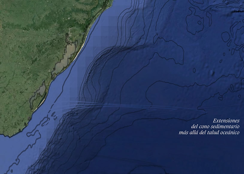 Estas áreas peninsulares están llamadas en pocos años por esos vertidos, a extenderse a no menos de 40 Kms del frente deltario; y en estas prospectivas les auguro extensiones de hasta 170 Km que durante más de 500 años resolverían el destino de todos nuestros residuos sólidos urbanos y todo tipo de efluentes. Bordeadas por dos formidables corredores de flujos como lo son el Paraná de las Palmas y el Barca Grande, esta es la única área vecina a la gran metrópoli en condiciones de oficiar dispersiones y generar nutrientes, aún con la más alta escala de presiones. Una vez que alcanzan el corredor Alflora ya tienen asegurado el viaje hasta el talud oceánico hasta más allá de los 600 Kms del punto de giro en 90º.