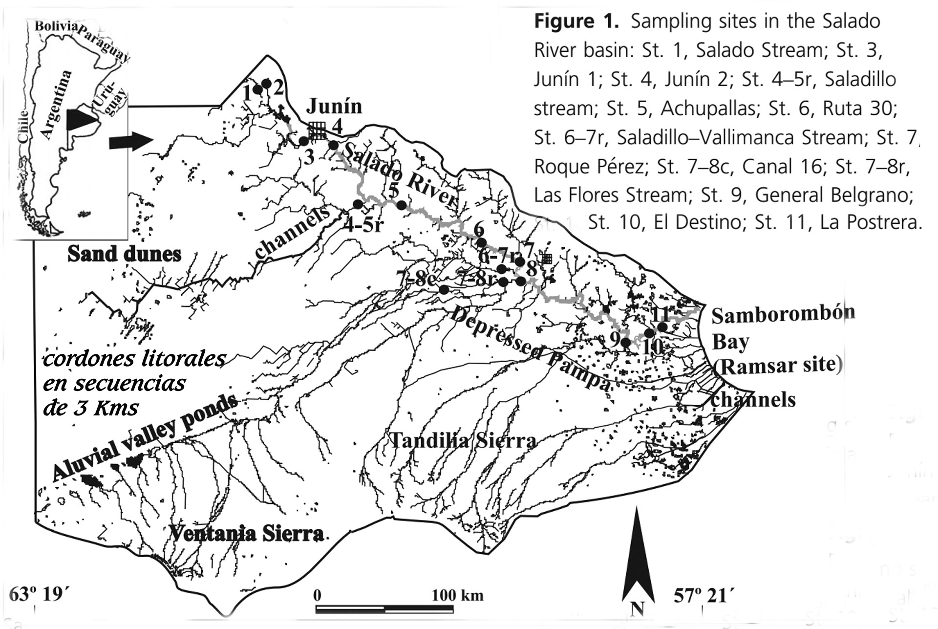 Gráfico para mostrar el error que heredan de la geología apuntando “dunas”, tomado del Chemical classification of the water in a lowland river basin (Salado River) affected by hydraulic modifications. Gabellone, Solari, Claps, Neschuk