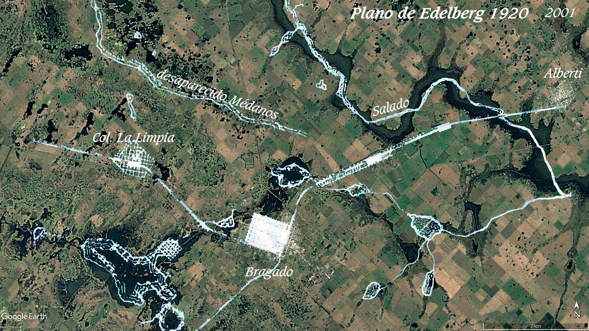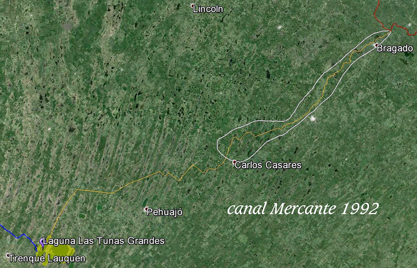 Lo que siguió después ya lo hemos venido y seguiremos tratando, apuntando en especial a los antecedentes cercanos, tanto los relacionados con el canal Mercante y sus novedades, como,los relacionados con el canal San Emilio y las dificultades que arrastra y carga a cuenta de los sueños de Bragado. En todos los casos hacemos una y otra vez incapié en geomorfologías desde mirada por termodinámica de sistemas naturakes abiertos y enlazados, que no aparecen esbozados en ningún lado. Todo es mecanicismo puro expresado con la alta irrelevancia de los soportes matemáticos que ya el INA nos acerca en el /salado11.html A seguido hacemos incapié en la traza del sistema del desaparecido Médanos, que desde Junín hasta Bragado tenía su trayecto y hace más de un siglo dejó de hacer sus aportes, que entonces fueron un poco más al Sur resueltos por los del canal San Emilio
