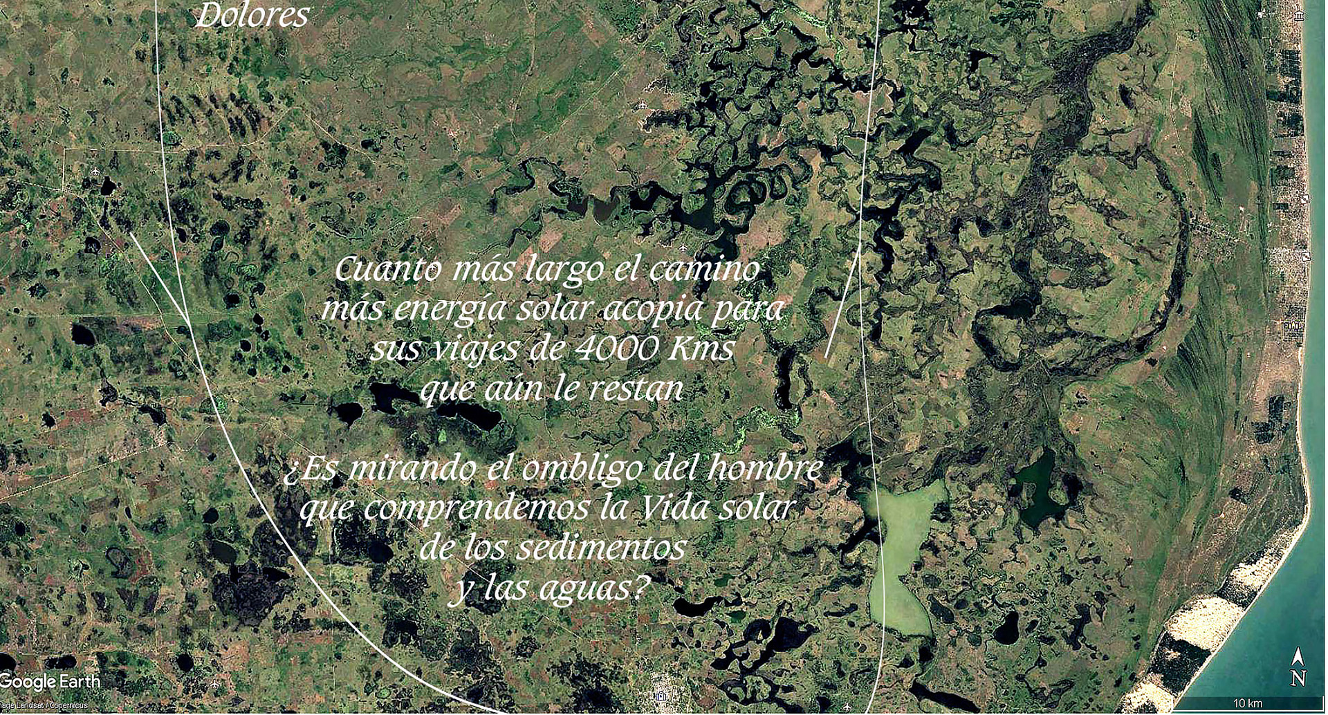 Apreciamos sus desarrollos en gran exhibición de visibilidad en 36º 05' S - 63 18' O hasta 33º14' S - 63º 14' O; y los últimos, alcanzando arranque visible en 36º 23' S - 62º 30' O. Tras la fractura terciaria generada al Sur de las sierras de San Luis, aquí descubrimos al Río 5º oficiando los servicios de prestar en el Cuaternario, el gradiente térmico determinante de las advecciones de los sistemas anteriormente señalados. Mereciendo aprecios los mutantes y obligados deslindes que fue encontrando el Río Quinto en su devenir y sucesivos compromisos con los Río Cuarto y Tercero. Vicisitudes del Salado Salado . 1 . 2 . 3 . 4 . 5 . 6 . 7 . 8 . 9 . 10 . 11 . 12 . 13 . 14 . 15 . 16 . 17 En particular y ya llegados a las planicies y cotas por debajo de los 200 m/s.n.m, nuestro trabajo apreciará contrastar las inferencias mecánicas atribuídas al viento (Iriondo-Kröhling), con las termodinámicas que en estos últimos años venimos en planicies advirtiendo responsables de las salidas tributarias a los cuerpos de agua marinos A esas energías convectivas acreditamos las interminables acreencias generadas por los cordones litorales que descartamos hayan sido formados por olas oblicuas; y como parte fundamental de estos ecosistemas, destacamos las baterías convectivas apropiadas en los esteros y bañados aledaños, que por costas blandas y bordes lábiles transfieren esas irremplazables energías convectivas a las sangrías mayores. Estos cambios de paradigma en mecánica de fluídos, alcanzan y sobran para contrastar los catecismos de sedimentología. Si bien es indiscutible que los transportes de suelos calizos marinos cordilleranos han estado activos por más de 10 millones de años y son los responsables de los suelos de estas pampas, en estas longitudes cercanas al inicio de las grandes planicies, las dinámicas de los transportes sedimentarios hasta hoy referidos mayormente a la acción de los vientos del SO, no son a inferir en esos términos mecánicos, sino básicamente convectivos y advectivos de löss fluviales. Muy distintos aprecios energéticos caben por cierto, en lontitudes más al Oeste, frutos de desglaciaciones y sedimentos transferidos por fuertes erosiones y pendientes en las cuencas superiores, que son de estimar en términos mecánicos con un apropiado mix de energías convectivas en muchos tramos de las cuencas medias. Ya lo veremos cuando estudiemos los avatares padecidos por el río Atuel. Pero llegados a las actuales cotas por debajo de los 300 m, en la transición de energías gravitacionales a convectivas, cabe advertir este listado de episodios señalado líneas arriba, cada uno de ellos dando cuenta de muy distintas calidades y cantidades de energías. Estos cambios en cosmovisión amplían límites y soportes dinámicos en geología, que en las transiciones de finales del mioceno y en las bases del pampeano hay baches morfológicos que merecen atención.