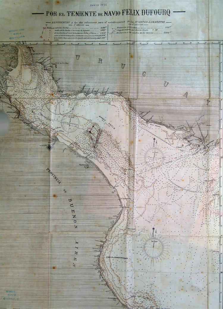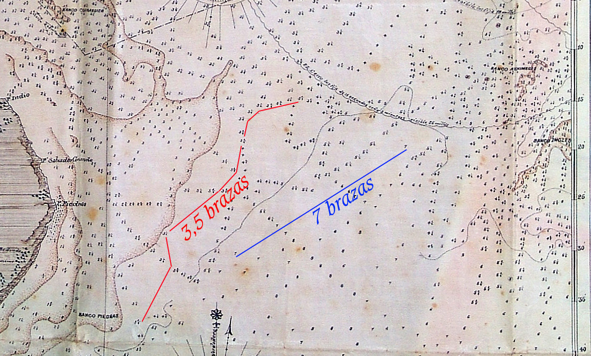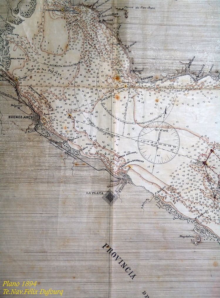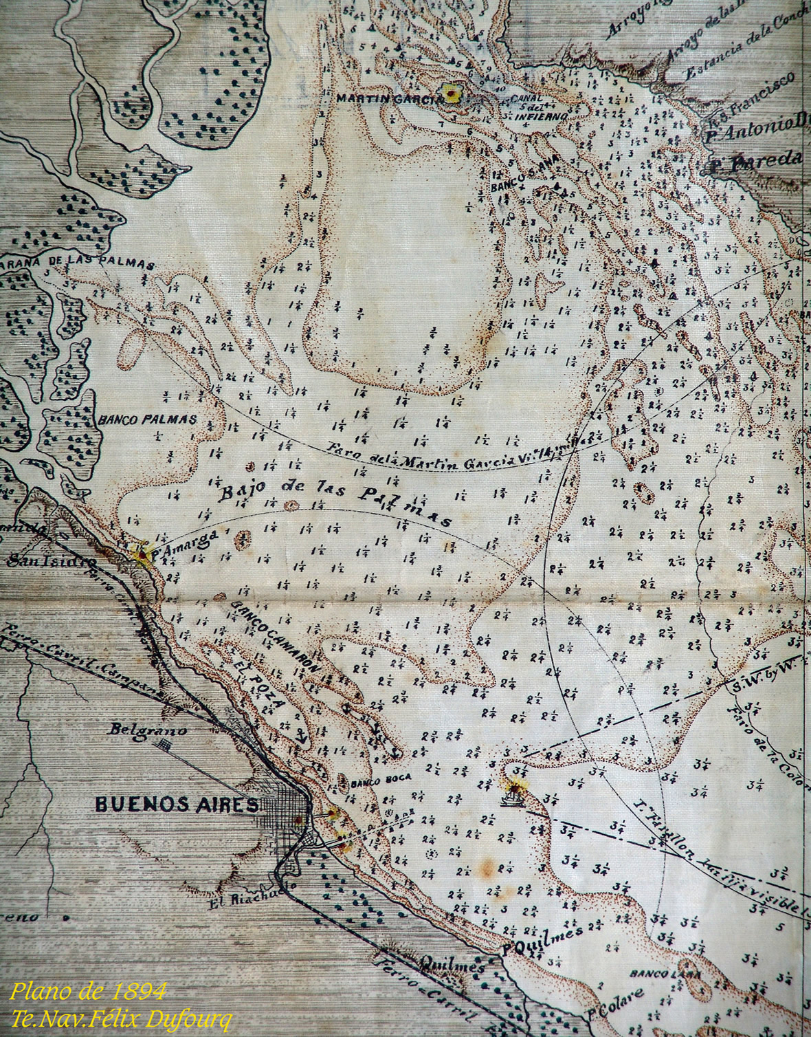 Teniente de navío Félix Dufourq 1894 . Profundidades en brazas de 6 pies ingleses.