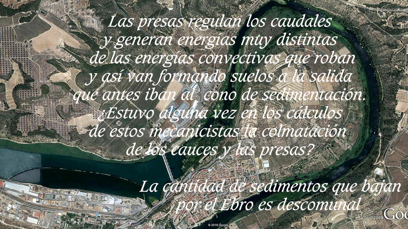 Comentario subido a esta nota: Pongan en orden los temas a mirar: 1º, el equilibrio de las dinámicas de los sistemas ecológicos; 2º su capacidad de carga: 3º los temas generales del ambiente, incluido flora y fauna y 4º los discursos sobre la sustentabilidad. Es inútil pasar al 2º punto sin entender el 1º. Al mismo tiempo –y bastante más complicado de aceptar por el abismo que se abre a la mecánica de fluidos -, comenzar a entender estos enlaces en las interfaces tributarias desde termodinámica de sistemas naturales abiertos y enlazados. Hasta aquí mentan arrastre de sedimentos. Los sistemas convectivos “transportan” y por ello es lo 1º que tienen que aprender a considerar. Desde Xerta a Amposta todo es convectivo, en tanto no se den a desembalzamientos. Uds mismos roban sedimentos a lo largo del cauce para generar suelos. Inútil pedir a los vecinos que abran sus compuertas inferiores. Llegará el día en que las abran sin que nadie lo pida. Mientras tanto, consideren a este delta como al hijo bobo que todos quieren, pero nadie entiende por qué se generó teniendo el Ebro los formidables recursos de energías gravitacionales que siempre tuvo. Se han ocupado por siglos de mirar con ojos mecánicos la cuestión de sacar provechos y ahora sería bueno verlos mirar estos temas con criterios termodinámicos. Si quieren avanzar sin atropellar, empiecen por el conocimiento que reclama en primer lugar dejar a Newton en paz. Francisco Javier de Amorrotu Masó