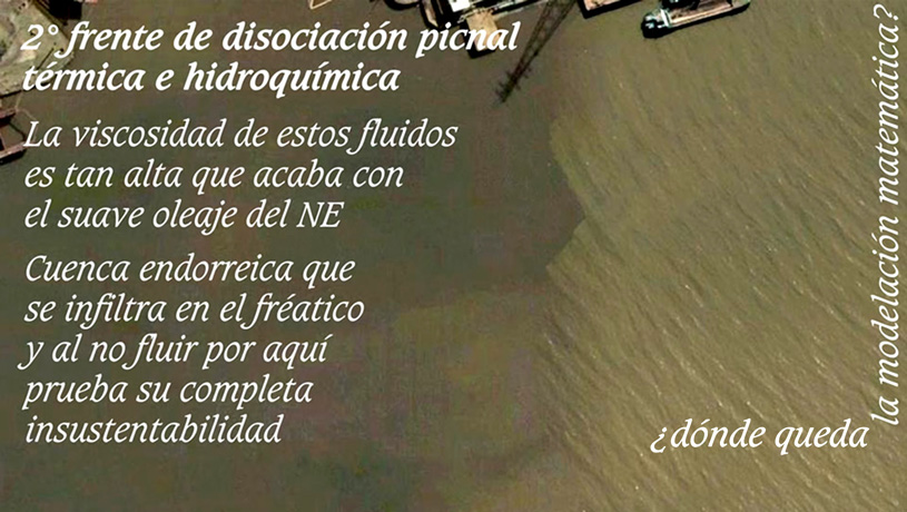 Aunque todos los que piden ayuda logren ser trasladados a palacios en esta cuenca y solo las aves defequen, nada en ella es sustentable para estos chocolates que solo se expresan vomitivos en eventos máximos, polutando todo el tiempo aires, suelos y subsuelos. No hemos mencionado que esta cuenca se ha cobrado ya más víctimas silenciosas que las ofrendadas en las guerras de la independencia. Las que se cobrarán los vuelcos de efluentes por salidas difusoras de emisarios cruzadas a las dinámicas ya exhaustas del estuario, superan cualquier imaginario. Ningún inventario resistiría su lectura. Ver causas D 179/2010, D 173/2012 y hoy CAF 21455/2017. 11,5 años con más de un millón de caracteres atrás de estos mismos escenarios de vuelcos de barros y efluentes al estuario. . Estos escenarios "epi"calípticos no se miran sino por ecología de ecosistemas hídricos en planicies extremas. Ya pasaron 5 años del video editado de 2 horas refiriendo de este devenir mediterráneo de Buenos Aires.
