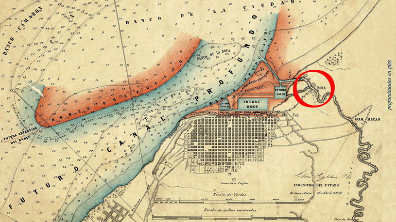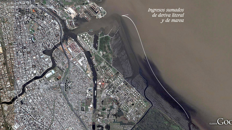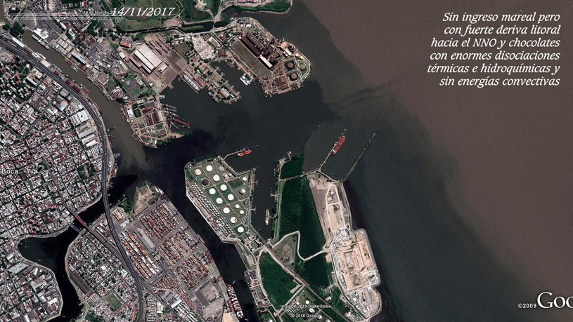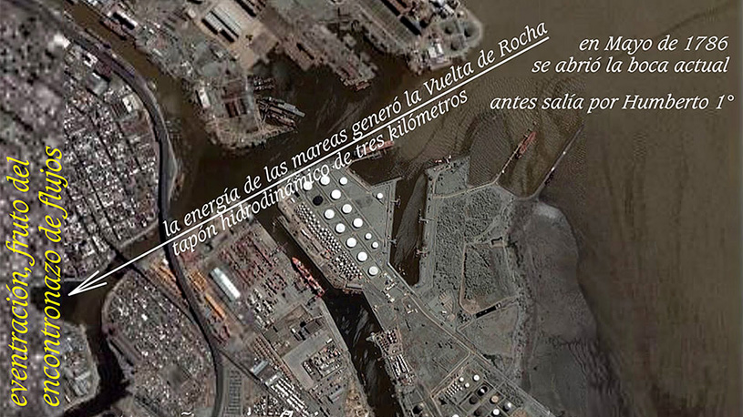 De la Historia de la Boca del Riachuelo de Enrique de Gandía Durante la primera fundación tuvo el nombre de Río Pequeño. Hoy a su nueva entrada que habilita ingresos mareales directos, le sumaron un puerto de carga para buques de 12 m de calado que inhabilita toda y cualquier asociación térmica con los flujos interiores que así quedan bloqueados sin remedio, paralizando todo el curso interior. Bastan 0,2º para disociarlas.