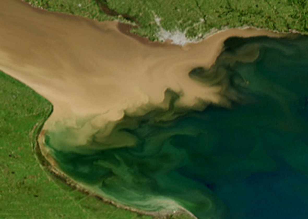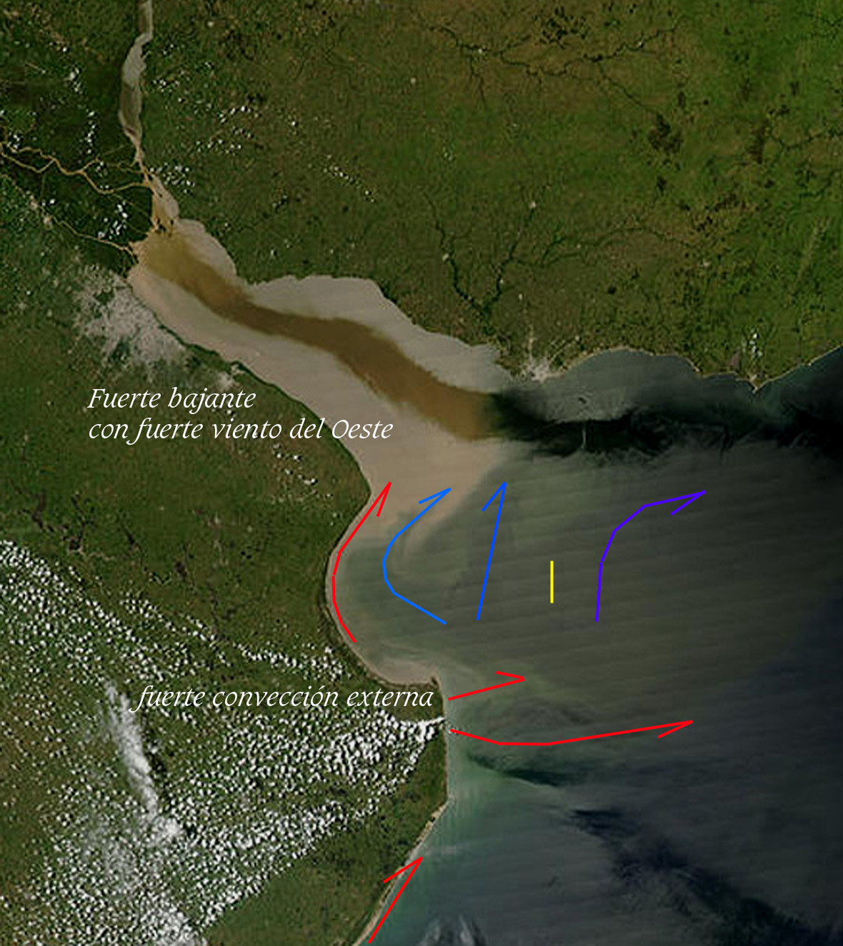. .. . . . . . 2. Superado ese escollo, la masa sedimentaria del frente, por convección externa, apura su paso. . . . . . . . .. . . . . . . . . Probable viento Norte parece descubrirse también fugando sedimentos de Punta Médanos.