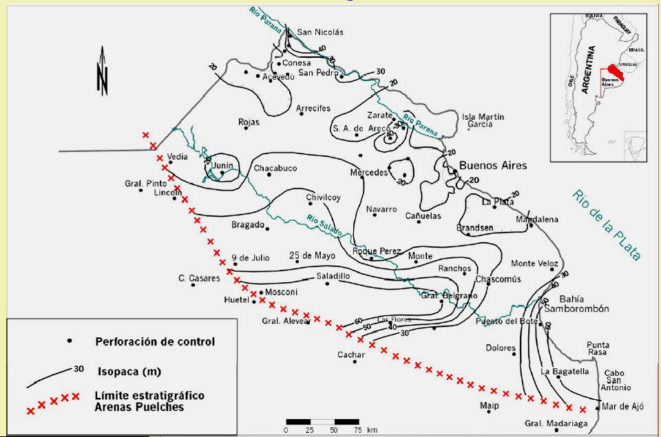 Suelos constituidos hace 2,5 millones de años fueron removidos sin piedad ni criterio otro que hacer negocios de barrios cerrados en áreas puntualmente reservadas como rurales y donde expresamente está prohibida esta palabra que tanto gusta a los ingenieros: "sanear". Ver art 2º de la ley 6254 y art 101 de los dec 1359 y 1549, reglamentarios de la ley 8912. La protección natural desapareció en toda su extensión para dejar la Formación Puelches en miles de hectáreas por completo descabezada y ¡ninguno de estos ingenieros lo advirtió! ¡Señalan el ajustado espacio entre la camisa y la perforación que tantas veces queda sin gravar y cementar... y no reconocen las descomunales barbaridades de la planicie intermareal! "Tan oscuro de entender estimado Mazzei, como el realizar un viaje más allá de la Luna". ¿Dónde termina la responsabilidad de este crimen descomunal? Francisco Javier de Amorrortu, 6 de Marzo del 2011