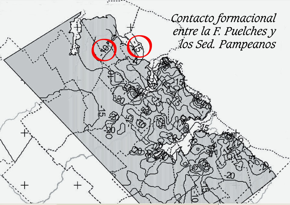 Desde la capa freática el agua percola hacia el Puelche y si bien existen en ese paso procesos que actúan en sentido de purificar el agua, la proliferación de descargas contaminantes y su concentración en áreas relativamente poco extensas, genera una presión sobre estos mecanismos naturales que ven superada su acción, terminando por infiltrarse los contaminantes y difundiéndose en el Puelche. En adición, existe un mecanismo que se ha venido ignorando en los estudios efectuados hasta el presente, al cual por su magnitud y por establecer una conexión directa entre freática y Puelche, le asignamos una incidencia relevante. Se trata de las perforaciones que alcanzando las arenas Puelches no están adecuadamente construidas o mantenidas y poseen fallas en la configuración de la aislación vertical (sellado entre la camisa y la perforación). En estos casos, lamentablemente muy frecuentes, hay una “difusión directa” de agua del freático en el Puelche. Se construyen por año centenares de estas perforaciones que llegan al Puelche y no se ejerce ningún control sobre la tecnología ni los materiales empleados. En la mayor parte de estos pozos no se siguen los procedimientos recomendados para asegurar la aislación vertical entre capa freática y acuífero Puelche con el resultado de que este verdadero “cribado” de las arcillas aislantes ha puesto en contacto directo a ambas capas de agua con la consiguiente contaminación del Puelche. No son centenares, sino cientos de miles. Un solo fabricante de bombas sumergibles ha entregado aprox 250.000 bombas al mercado en los últimos 30 años. Fácil es con ayuda de otros fabricantes ver al menos duplicada esta cifra para estimar que a pesar del aumento de los servicios públicos con agua potable capturada en el estuario, las pinchaduras de 10 a 15 cm de diámetro en los subsuelos no cesan de multiplicarse en el Gran Buenos Aires. Y no por último; cuando se extrae el agua del Puelchense con un caudal muy grande, se fuerza a las sales que naturalmente quedan filtradas en mantos superiores, a penetrar en el mismo Puelchense. El efecto de arrastre de sales no es tanto de los mantos superiores como de la arcilla azul determinante del final del Puelches. En más de 30 años no he visto sarro en mis cacerolas. Todos mis inmediatos vecinos de los portentosos barrios cerrados Ayres del Pilar y La Lomada ya las tenían con sarro a las pocas semanas. Sin duda es mejor extraer con bombas más pequeñas y en especial, sustituyendo presión por caudal. "La Formación Puelches suprayace ampliamente en la Prov. de Bs. As. en contacto neto y generalmente erosivo a las arcillas verdes-azuladas de la Formación Paraná de origen marino". Sergio Daniel Amato y Adrián Silva Busso Así tenemos hoy agotado el recurso en toda la ribera del Riachuelo, donde se dice que el agua que se extrae es “salada”. Ya veremos en los gráficos que siguen, que esta situación es mucho más extensa que la expresada por Bellino. Sin embargo estas escalofriantes cifras son nada al lado de los estragos en miles de hectáreas de la planicie intermareal de subsuelos 5 veces millonarios en años; mantos que definen la protección irremplazable del santuario Puelches. Queda además en claro que si no se construye el servicio cloacal y sólo se extienden las redes de distribución de agua, el acuífero Puelche se seguirá contaminando y que resulta necesario depurar las aguas superficiales porque sus impurezas inevitablemente llegarán a las aguas subterráneas. El medio ambiente pone en evidencia una vez mas su indivisibilidad y lo que ocurre en la superficie afecta al ámbito subterráneo que a su vez repercute en la población asentada en el área Los organismos del estado: nacional, provincial y municipal no protegieron el agua subterránea, lo que sumado a los intereses de las grandes empresas constructoras que presionaron luego por activar un modelo basado en grandes obras (plantas potabilizadoras y acueductos por gravedad, los llamados ríos subterráneos) ha concluido por llevar el agua de río tratada cada vez mas lejos de las márgenes del Río de la Plata. Finalmente la empresas de servicios privatizadas continuaron con las soluciones ya propuestas por las empresas estatales. Así el área correspondiente a O.S.N. que tomó Aguas Argentinas pasó a abastecerse íntegramente con agua de superficie potabilizada abandonando el agua subterránea como recurso. Sin la correlativa extensión de las redes colectoras cloacales este factor, importación de agua a vastas zonas del primer cordón del conurbano, contribuyó decisivamente a la suba de los niveles de los acuíferos, que ahora amenazan inundar la región desde abajo. Estas empresas, con un ya de por si bajo nivel de exigencia en sus contratos en lo referente a las metas de expansión de las redes colectoras cloacales, postergaron aún mas estas obras, aunque continuaron extendiendo las redes distribuidoras de agua, naturalmente mas económicas de ejecutar, con menores costos de explotación y mas redituables a la hora de facturar. La Provincia de Buenos Aires a su vez incumplió con las obras de depuración de los líquidos cloacales colectados por las redes o transportados por camiones atmosféricos, que debía ejecutar UNIREC organismo que ha sido disuelto faltando construir cuatro plantas depuradoras sobre el Río Reconquista. Con lo cual se siguen descargando efluentes cloacales crudos (v.g. Partido de San Miguel) y no se pueden extender las redes previstas de conectar a esas instalaciones de tratamiento (v.g. Partido de Hurlingham).