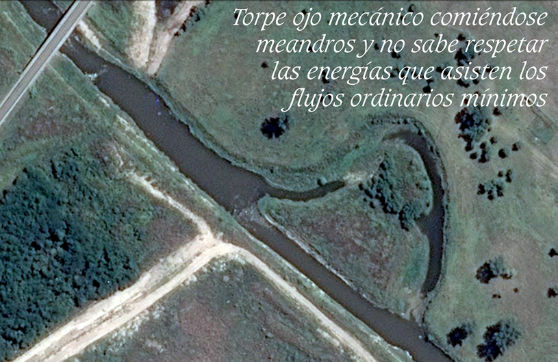 ¿Nos alcanzará la doctrina, Marienhoff o Newton una mano para entender estos viajes extraordinarios? Cómo habríamos en función de lo que ven nuestros ojos, de resignar cuidados y criterios que hoy vemos inexplicablemente bastardeados y por completo velados por las leyes de las ciencias exactas, naturales y legales, . Así son de desastrosos sus resultados. Ver PISA MR en donde todas estas ciencias se han puesto de acuerdo para celebrar permanentes plenarios de fracasos. Ver video de la audiencia en el JCA Nº 15 de la CABA en la causa 45090/12, hoy con rumbo al TSJ: https://vimeo.com/127666688 El deseo de redoblar la mirada y que ésta sirva de apoyo al perfil nuevo de voces que acompañen conceptualizaciones fenomenológicas, en demandas judiciales y en propuestas legislativas, es lo mínimo que cabe. Un cauce en planicie merece definiciones más precisas que las que regala la jurisprudencia y los consejos de Marienhoff. En primer lugar, un cauce en planicies extremas nunca está solo. Siempre reconoce otros hermanados que incluso no dejan huellas de cauce. Y entre ellos, los esteros que se ocupan de acumular las energías solares y entregárselas a las sangrías mayores y menores para que a falta de energías gravitacionales las tengan convectivas.