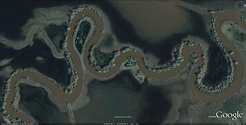 Estos vivos y vitales meandros para capturar más energía según convenga a la sensible sabiduría de los ríos para encontrar sus alimentos solares, aún no han sido en lo más mínimo valorados por la ciencia hidráulica e intérpretes de sus sinfonías, que hasta hace pocos meses seguía cortando meandros en el río Areco. Ver los aportes del serrucho mecánico del consultor Serman y video del hombre orquesta de Areco por https://vimeo.com/129046075