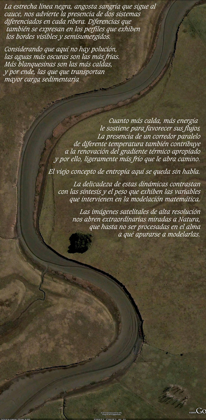 Con sus relaciones apreciadas en nuestra mirada ya tenemos parte de la caja termodinámica propia de los cursos de agua en planicies extremas dibujadas en conciencia. Este respaldo semiótico debería adornar el cartel de la AdA