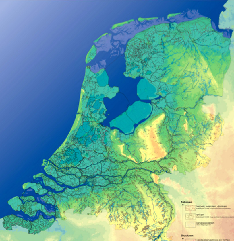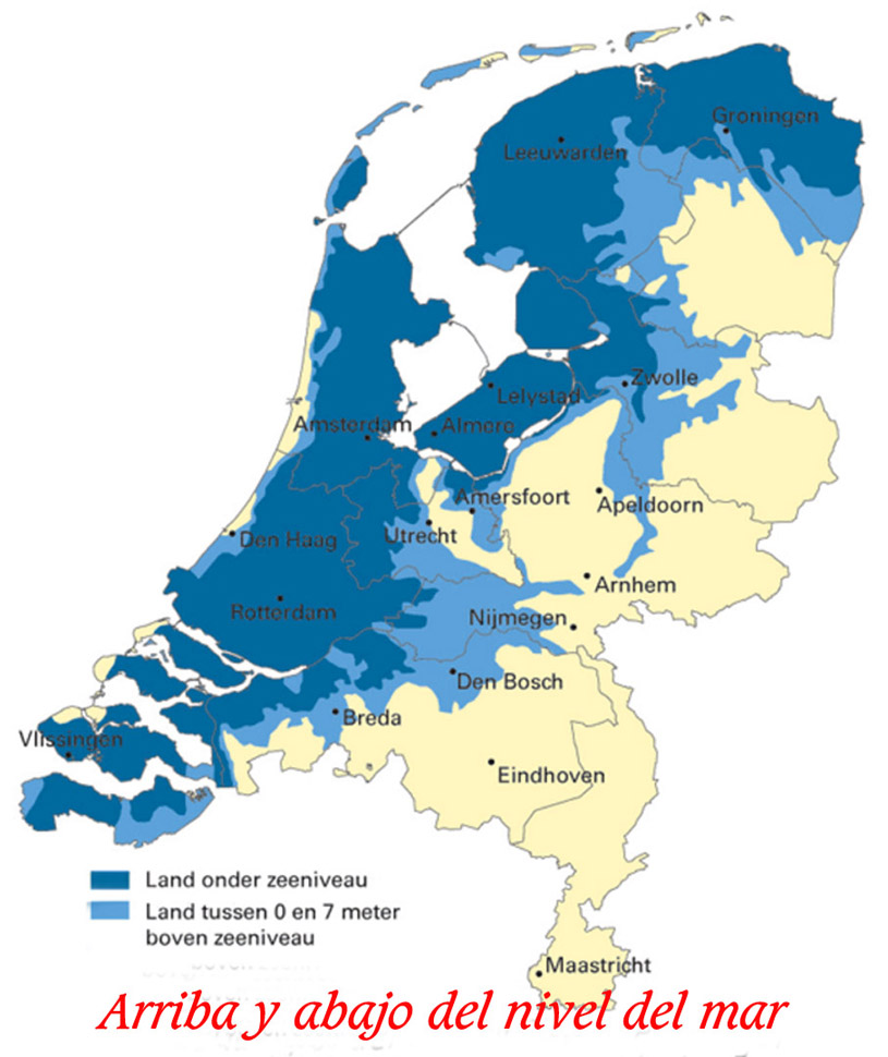 Antecedentes de un territorio 67 veces menor al de Argentina El actual territorio de Holanda (41.543 Km2) nunca se ha mantenido estable. Durante milenios, la geografía de la región había sido dinámica. La costa oeste se desplazó hasta treinta kilómetros al este y las mareas sobrepasaban regularmente la hilera de dunas. Las islas Frisias, que originalmente estaban unidas a tierra firme, se convirtieron en islas separadas en el norte. Los principales ríos, el Rin y el Mosa, inundaban la zona regularmente y en varias ocasiones cambiaron de rumbo en forma espectacular Los habitantes de Holanda se encontraron viviendo en un área inestable, inundable. Tras las dunas costeras de los Países Bajos, una alta meseta de turba se formó, conformado una protección natural del mar. Gran parte del territorio estaba cubierto por marismas y zonas pantanosas. Hacia el siglo X, los habitantes de la zona se dedicaron a cultivar la tierra, drenándola. Sin embargo, el drenaje provocó la contracción del suelo, y la reducción de la superficie en unos quince metros. El Flevopolder, construido junto al IJsselmeer, es la isla artificial más grande del mundo. Al sur de Holanda, en Zelanda, y al norte, en Frisia, esta evolución dio lugar a inundaciones catastróficas, destruyendo literalmente regiones enteras y la capa de turba, que se desprendió y fue llevada por el agua en las inundaciones. Desde la costa de Frisia, se comenzó a inundar la zona del este, formándose el Zuiderzee —el actual IJsselmeer—. Este mar interior amenazó con unirse a las tierras anegadas de Zelanda en el sur y a la reducción de Holanda a tan solo unas estrechas islas-dunas frente al gran Zuiderzee. Tan solo la intervención administrativa drástica salvó la región de la devastación total. Se comenzaron a construir los primeros diques de emergencia para reforzar los puntos costeros críticos. Más tarde, se constituyó el órgano autónomo especial, el waterschappen, que tenía la potestad de hacer cumplir sus leyes y decidir sobre la gestión del agua. A medida que fueron pasando los siglos, finalmente se terminó construyendo un entramado de diques junto a la línea de costa, protegiendo así la tierra de las inundaciones. Sin embargo, los holandeses no se detuvieron. En el siglo XVI, comenzaron a ganar tierra al mar, convirtiendo los lagos, marismas y zonas pantanosas en pólders. Esto continuó hasta el siglo XX; por ello, los mapas antiguos de Holanda poco se parecen a los actuales.