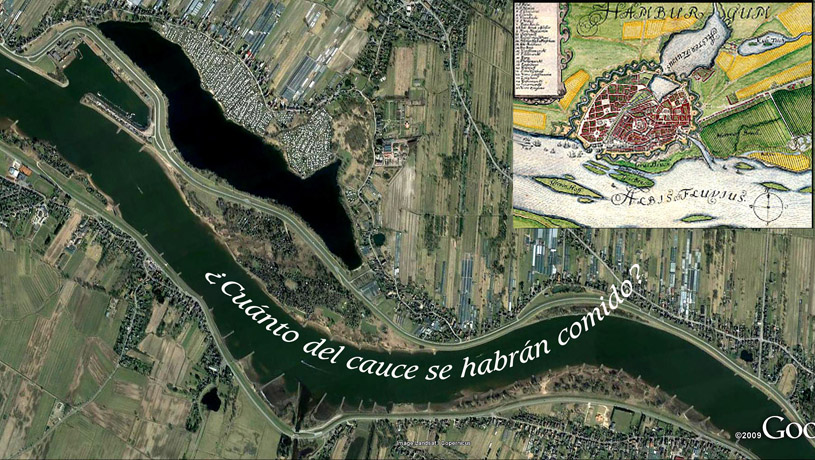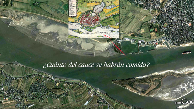Correlatos se conservan en las ciegas convicciones que sostiene la mecánica de fluidos respecto a la energía que mueve los flujos ordinarios de ríos de llanura y desprecio cognitivo a la función natural de los sedimentos acoplándose en la interfaz de salida a la deriva litoral que guarda hipersincronicidad mareal las 24 hs del día y en su margen externa depositar por capa límite térmica el cordón litoral de borde cuspidado determinante de las acreencias territoriales, aquí por completo alterados destruyendo los sistemas convectivos ribereños con beneficios que de la mano de hambrientos de suelos van por depósitos -no importa si infernales-, en estas interfaces. El ejemplo de los holandeses ganando tierras acopiando sedimentos de los ríos ya es conocido. Pero confieso que no sabía de comparables apetitos alemanes que las imágenes del rio Elba nos acercan con los más elementales criterios mecánicos a la vista. Sobre Hamburgo y sus problemas estuariales ver este http://www.alestuariodelplata.com.ar/rioelba.html