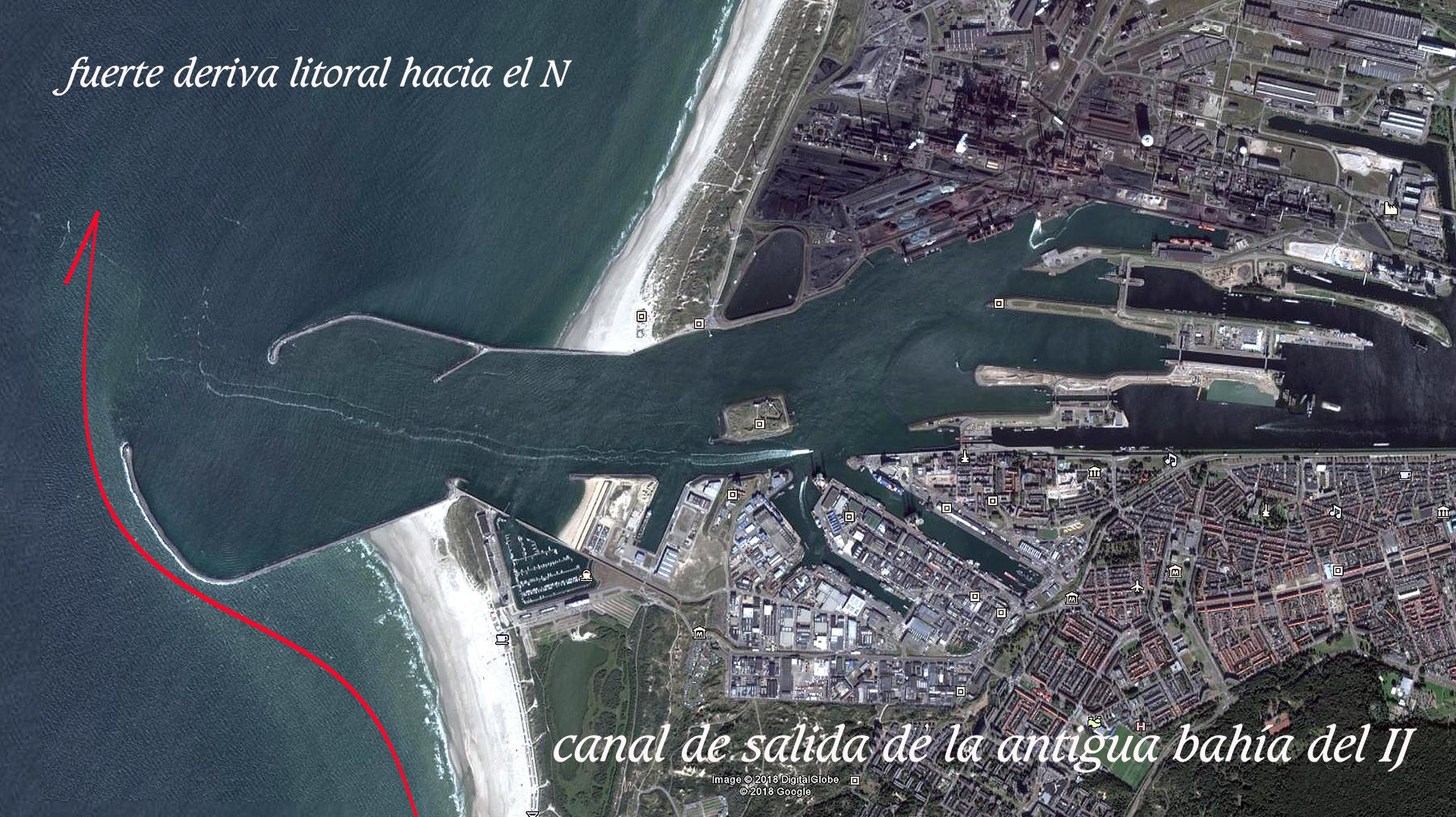 Esta lucha en curso por dominar el agua juega un papel importante como potencia marítima y económica en el desarrollo de Holanda y en el desarrollo del carácter de los holandeses. Las imágenes que siguen pertenecen a la antigua bahía del IJ y a la salida del actual puerto de IJmuiden (canal de salida de Amsterdam)