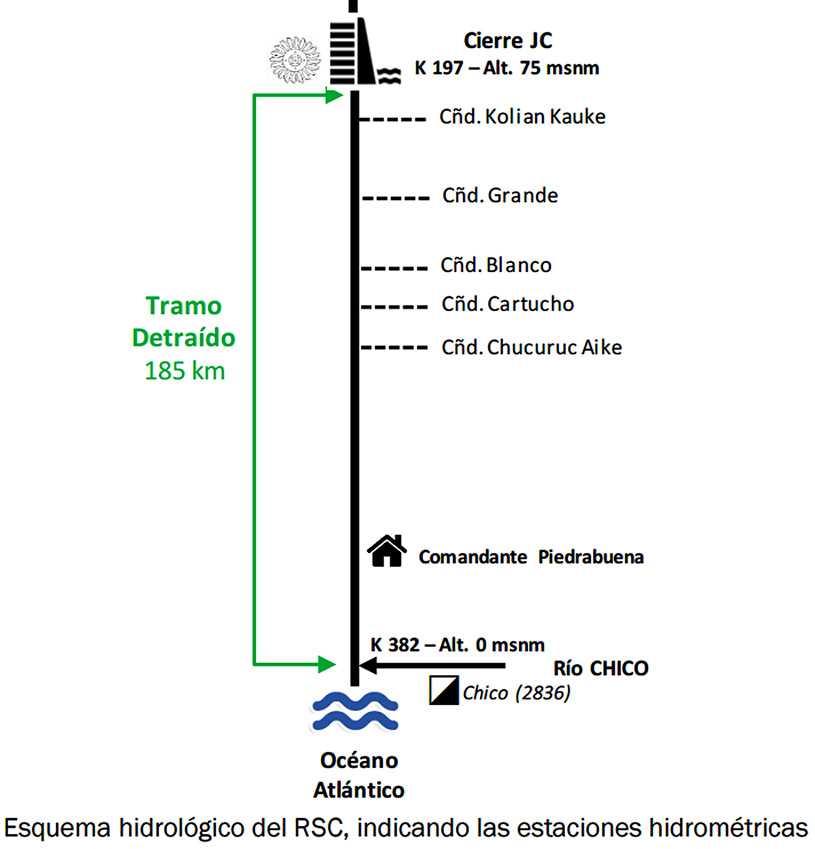 A pesar de que gráfico ya muestra profundidades muy pobres, a este problema llamado "atarquinamiento" lo niegan con más voces reiteradas que a las propias estratificaciones en las represas y tan solo infieren con criterios mecánicos lo que sucederá en los primeros 1500 m aguas abrajo de la presa Jorge Cepernic. A partir del Km 345 lo empezarán a descubrir con la mayor rapidez. Cuando descubran el problema ya será tarde. No habrá otro retorno que el recuerdo de las Musas y el recuerdo de los arts 2º y 3º de la ley 23879 que evitó el debido tratamiento en las comisiones legislativas durante al menos los 180 días que por art 3º les cabían. Veremos entonces con qué elocuencia aplican su "Respuesta a inquietudes" "En caso de que la inquietud se trate de una duda o consulta de información con respecto a cualquier componente del proyecto, la misma deberá ser atendida y respondida en un lapso no mayor a 10 días consecutivos. Sea que la inquietud, reclamo o queja haya sido considerada apropiada o rechazada, el reclamante deberá ser debidamente notificado. En cualquier caso la información que se brinde debe ser pertinente, relevante y entendible de acuerdo a las características socioculturales de quién consulta. Éste último debe dejar una constancia de haber sido informado y de satisfecho su consulta, la misma será archivará junto con la inquietud. En caso de que la inquietud se trate de una queja o reclamo con respecto a cualquier componente del proyecto y haya sido considerada como apropiada, la UTE deberá ponerse en contacto con el reclamante en un lapso dado por el nivel de urgencia: a) Inquietud Urgente: Deberá ponerse en contacto inmediatamente con el reclamante y brindar una solución en un tiempo acorde a la urgencia. b) Inquietud regular: Deberá ponerse en contacto en un lapso no mayor a 10 días consecutivos para avanzar en la búsqueda de una solución. La solución puede ser propuesta por la UTE, por el reclamante, por una negociación conjunta o si es pertinente por un tercero (i.e. técnico específico). Es recomendable utilizar para estas resoluciones los mecanismos y espacios constituidos como formales a partir del Proyecto. Así como comunicar y participar a los organismos locales pertinentes. A modo de ejemplo, la solución puede implicar la implementación de medidas de mitigación, la modificación y/o abandono de tareas o actividades del proyecto hasta la compensación justa por bienes dañados o perdidos. Implementada la solución, el reclamante deberá dejar una constancia de conformidad y cierre del reclamo; la misma será archivada junto con la inquietud". Los antecedentes de Serman en las respuestas recibidas en su plan maestro del río Luján permiten afirmar que no estamos en presencia de Blancanieves. Ver causa I 74024 en SCJPBA referida a su plan maestro, visible por http://www.hidroensc.com.ar/incorte180.html a /incorte184.html