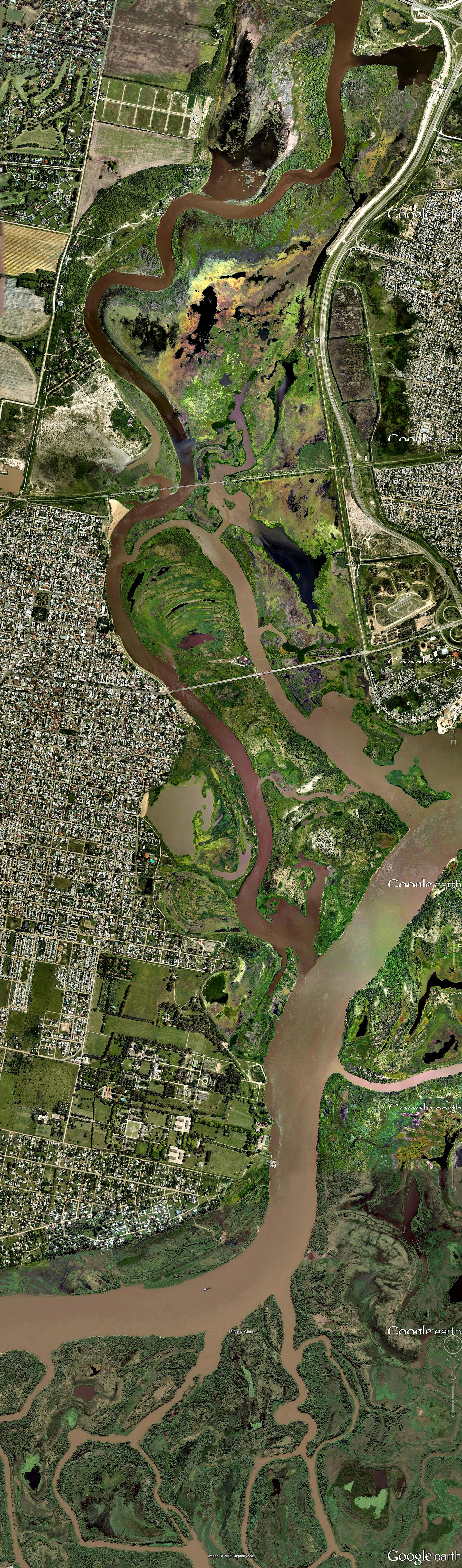 Imágenes del Salado Sin reconocer aportes del Paraná superiores a los normales vemos a la península de Santa Fé transformada en una isla por los aportes que cruzan desde el Salado hasta la mal llamada laguna Setúbal. Antiguos esteros deformados por la presencia humana y devenidos en bañados siempre anegados con circulación de flujos tan importantes, que mal les cabe el mote de laguna y el olvido de sus orígenes. Olvido que se traduce en el embudo que conforma el Río Coronda, que es hora sea aliviado por un ensanche importante de los pasos al Este del barrio El Pozo. Estas circunstancias fueron no obstante la gravedad de la inundación, muy afortunadas. Pues si la cuenca del Paraná hubiera visto incrementado sus aportes ordinarios, muxcho mayor habría sido la calamidad.